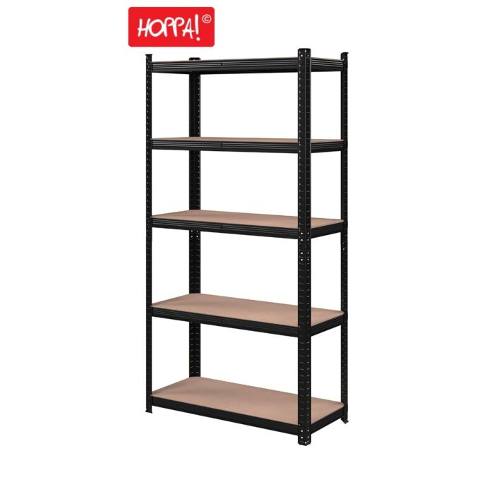 Hoppa! Songmics Magazijnstelling - Opbergrek, stellingkast, werkplaatskast, 90x40x180 cm (BxDxH), belastbaar tot 875 kg (175 kg per plank) - zwart