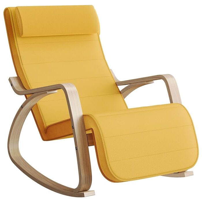 U plaatst een review over: Schommelstoel met berkenhouten armleuningen, 5-voudig verstelbare voetensteun voor slaapkamer, woonkamer, pastelgele natuurlijke kleuren
