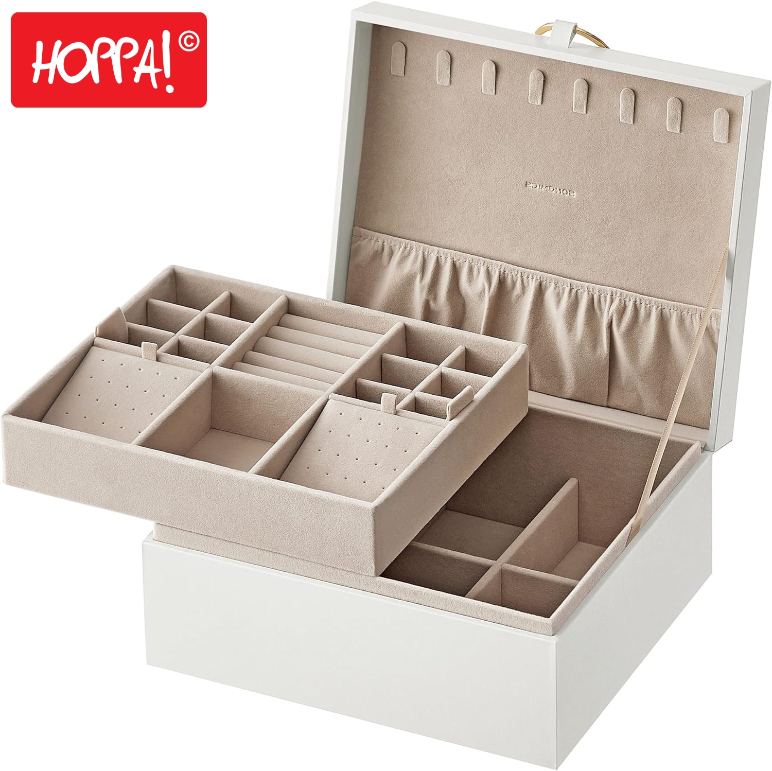 Hoppa! Songmics Sieradendoos, 2-laags sieradendoosje, sieradenorganizer met handvat, afneembaar sieradenrek, zwevend effect, 20,5 x 24 x 11 cm, cadeau-idee wit