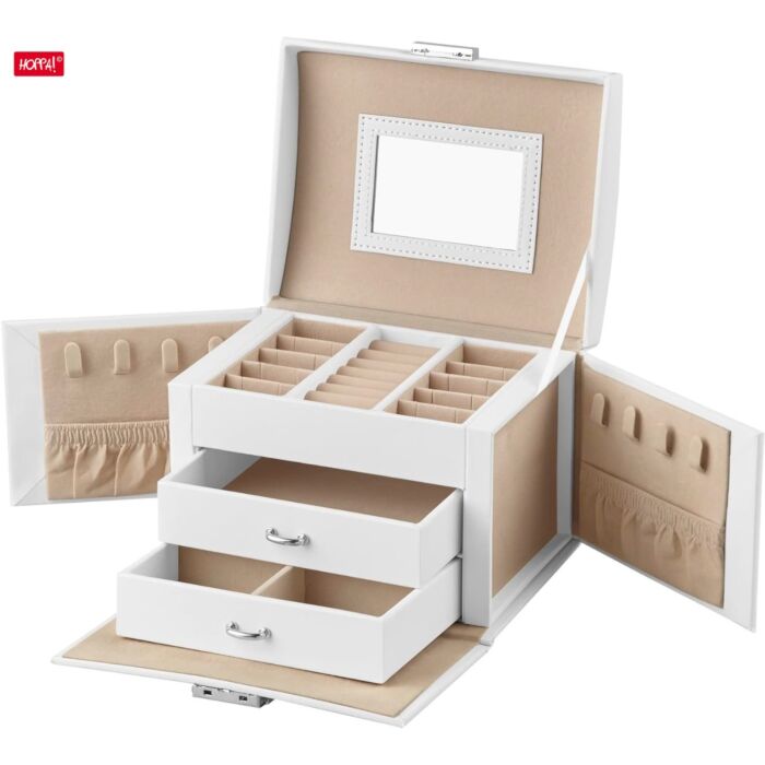 U plaatst een review over: Hoppa! Songmics Sieradendoos, Juwelendoos, juwelenkistje, draagbaar, afsluitbaar juwelendoosje, met 2 lades, spiegel, slot en sleutel