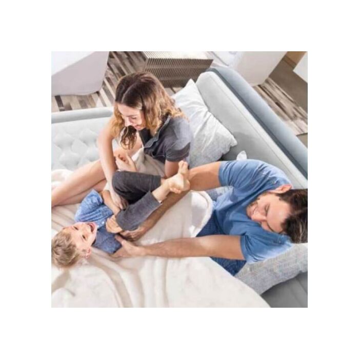 De Intex Ultra Plush is voorzien van een geïntegreerde elektrische pomp die het luchtbed in slechts vijf minuten opblazent. De verhoogde hoogte van het bed maakt het eenvoudiger om in en uit bed te stappen, en het hoofdboord biedt een comfortabele rugleuning, ideaal om tegenaan te leunen tijdens het lezen of relaxen.