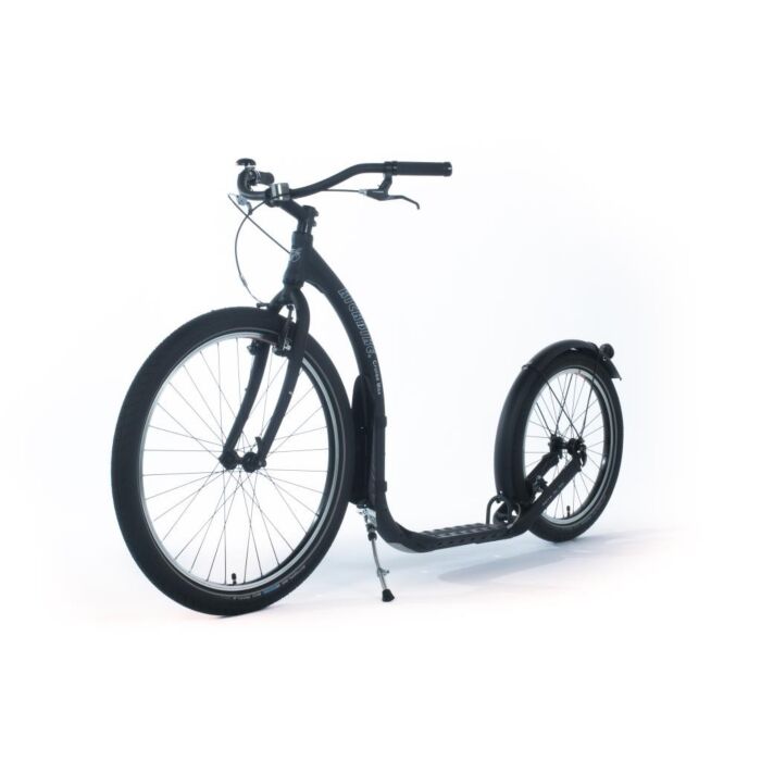 De KICKBIKE CRUISE MAX heeft een robuuste constructie, gemaakt van hoogwaardige materialen die duurzaamheid en stabiliteit garanderen. De afmetingen zijn ontworpen voor een comfortabele rijervaring, met een verstelbaar stuur dat geschikt is voor verschillende lengtes.