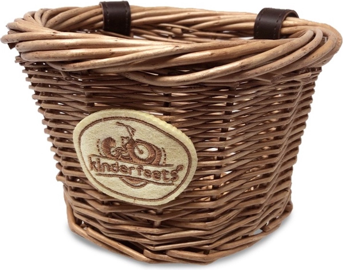 Met deze mooie rieten fietsmand van Kinderfeets kan iedere peuter zijn 'schatten' opbergen en vervoeren. Het mandje is eenvoudig aan het stuur van alle Kinderfeets loopfietsen, driewielers en de meeste andere kleine fietsen te bevestigen.