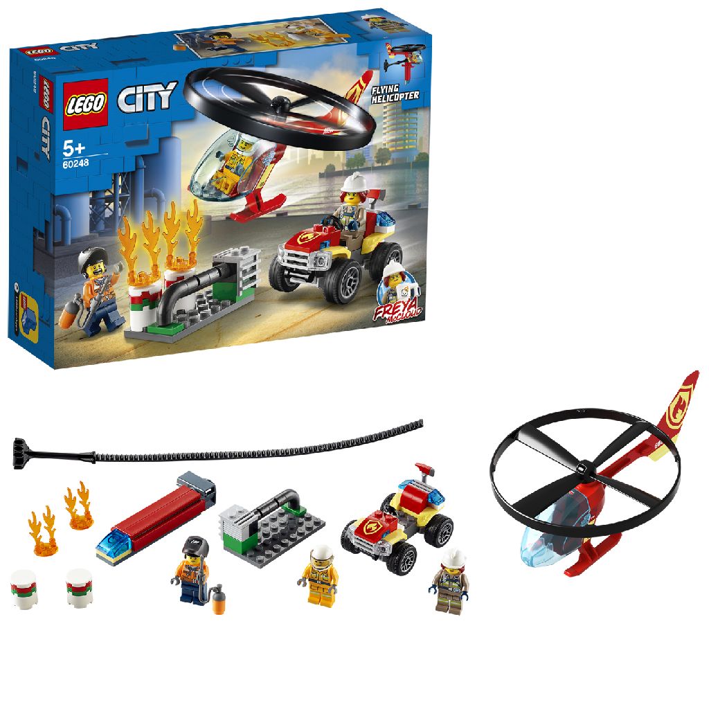 Aaaaahh! Vuur! Help! Een arbeider met een cool lasmasker heeft per ongeluk de inhoud van de pijp die hij aan het repareren was in brand gestoken! Gelukkig is de LEGO City brandweerhelikopter in de buurt en de piloot heeft een noodoproep gedaan aan het brandweerteam. Help de LEGO City tv-heldin, brandweercommandant Freya McCloud, aan boord van de supersnelle quad. En nu snel naar de brand en word de held van de dag! Doe jouw held of heldin de supersnelle actie van LEGO City cadeau met deze Brandweerhelikopter reddingsoperatie (60248) speelset bestaande uit een speelgoedhelikopter met trekbandje, een quad en nog veel meer. 93-delig. Geschikt voor kinderen vanaf 5 jaar.