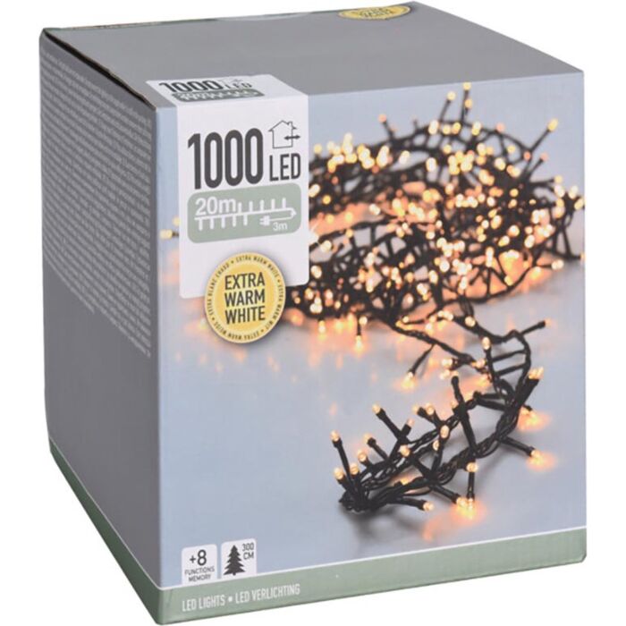 Microcluster - 1000 led - 20m - extra warm wit - Timer - Lichtfuncties - Geheugen - Buiten (DSS-81154.5)