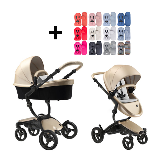 Mima Xari Kinderwagen | Frame - Black | Zitting + Kap - Champagne | Starter Pack - Stone White