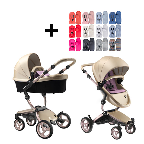 Mima Xari Kinderwagen | Frame - Rose Gold | Zitting + Kap - Champagne | Starter Pack - Pixel Pink