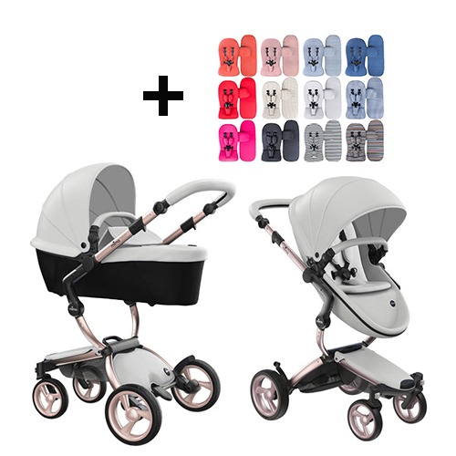 Mima Xari Kinderwagen | Frame - Rose Gold | Zitting + Kap - Snow White | Starter Pack - Stone White