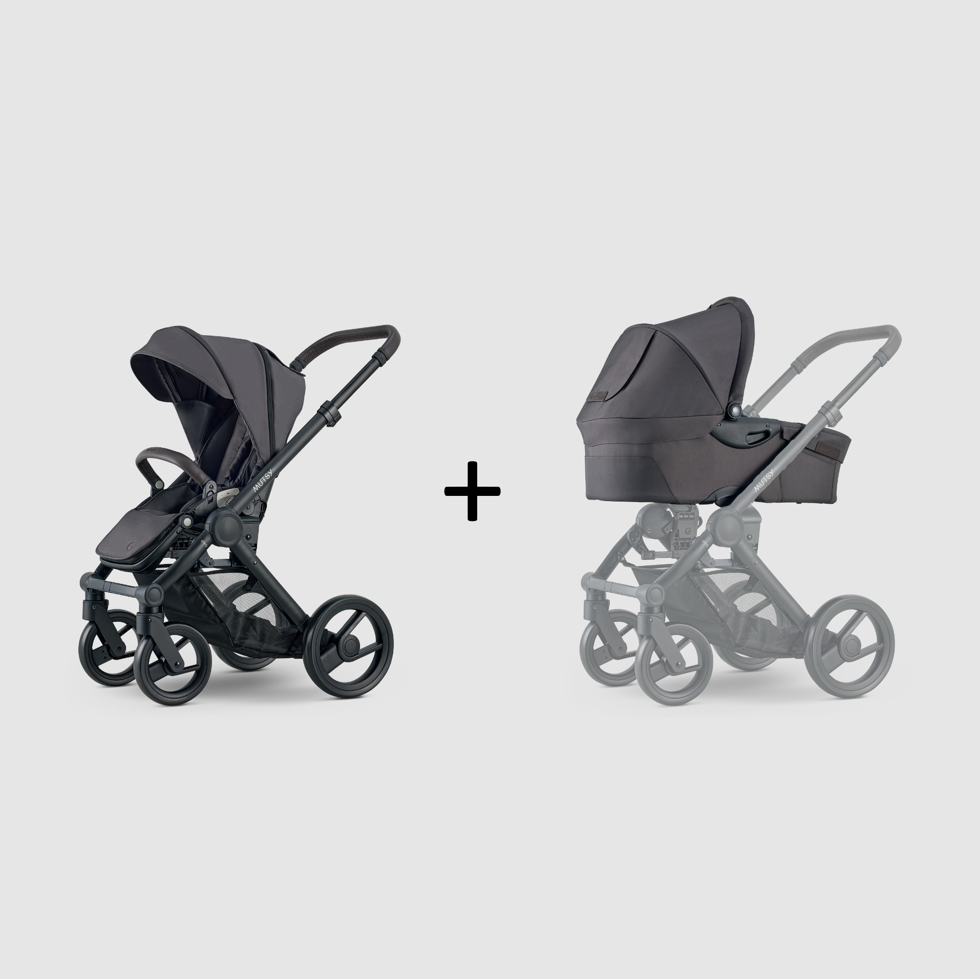 Mutsy Evo Kinderwagen + Reiswieg | Steengrijs | Zwart kader