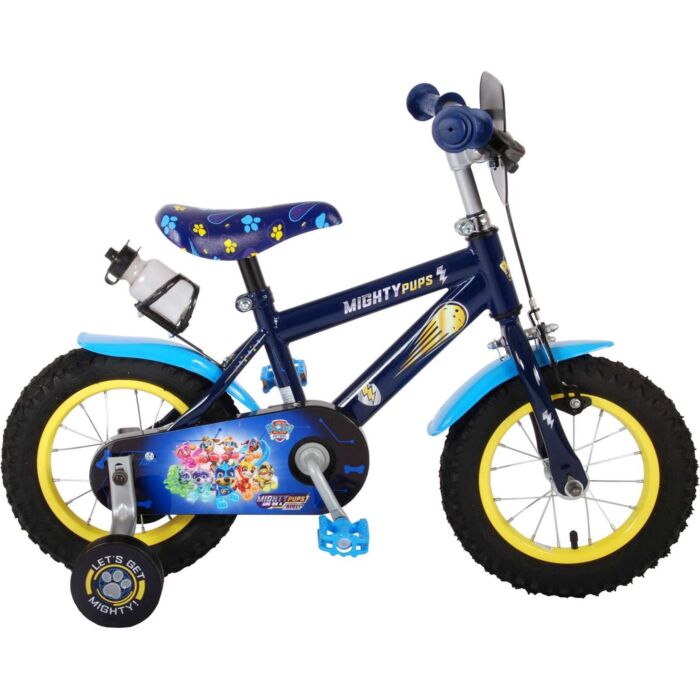 Paw Patrol Mighty Pups 12 inch. Paw Patrol Mighty Pups is de super leuke en spannende special van de Paw Patrol serie, speciaal voor de jongsten. De Paw Patrol fiets is werkelijk een topper. De fiets heeft een supermooi, stoer en modern frame en is helemaal in de kleuren van de coole special. De fiets is voorzien van een handrem en terugtraprem en een toffe bekerhouder. De kettingkast is, ter bescherming van de kleine vingertjes, gesloten. Ook heeft de fiets stevige afneembare zijwielen om snel te kunnen leren fietsen. Met deze fiets kan ieder kindje zo snel fietsen, waardoor het voelt alsof ze dezelfde krachten hebben als de Mighty Pups! Vroemmm, daar ga je!