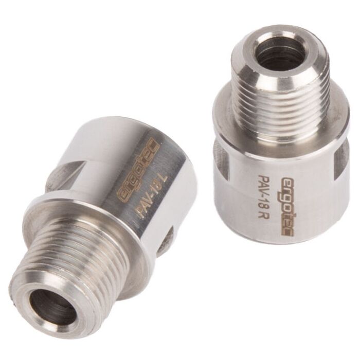 Met de Ergotec pedaalasadapters van hoge kwaliteit kun je de Q-factor (de afstand tussen de twee pedalen) van je fiets vergroten. Deze pedaal asverlenger is ontworpen om comfort en stabiliteit te verbeteren tijdens het fietsen door een bredere basis te bieden voor je voeten. De adapters zijn vervaardigd van duurzaam roestvrij staal en afgewerkt met een gepolijste look.