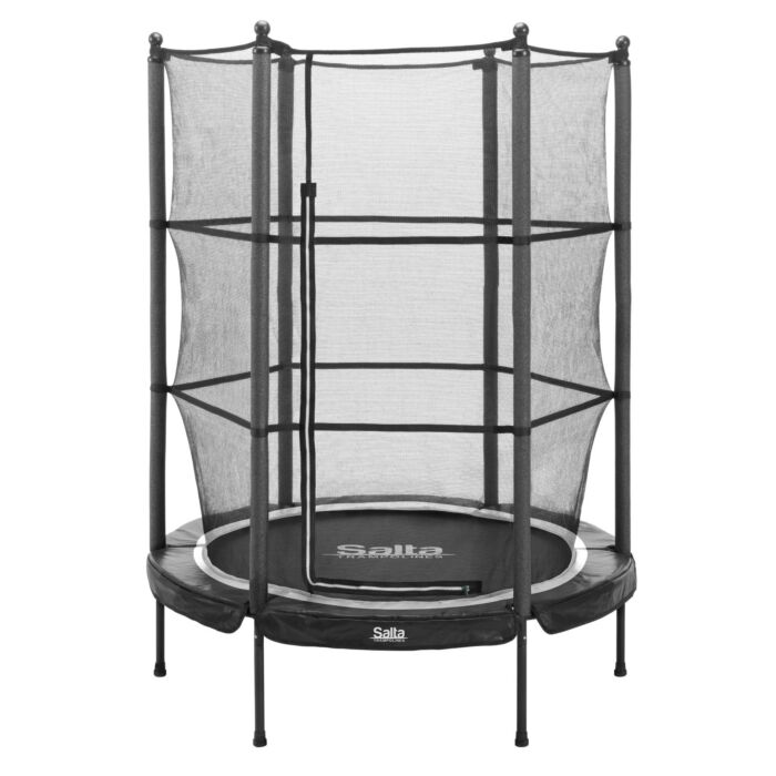 Het ontwerp van de Salta Junior trampoline omvat een geïntegreerde trampolinemat en een fijnmazig veiligheidsnet, wat zorgt voor een uitzonderlijk veilig gebruik. De trampoline is geconfigureerd met 30 elastieken veren, waardoor het springen zowel geluidloos als belastingsvrij is voor de rug en gewrichten van kinderen.