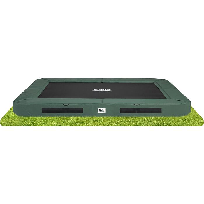 De Salta Premium Ground trampoline van 305x214cm in de kleur groen (model 5837G) biedt een geweldige springervaring dankzij het geïntegreerde ventilatiesysteem in de veiligheidsrand. Dit systeem zorgt voor optimale luchtcirculatie tijdens het springen en de rand is extra dik PVC voor maximale bescherming. Veranker de rand eenvoudig met de bijgeleverde set voor extra stabiliteit. De trampoline heeft een robuuste constructie die volledig gegalvaniseerd is, zowel van binnen als van buiten, voor een stevige basis. Met een hoogte van slechts 21,5cm boven de grond is de op- en afstap veilig en gemakkelijk, ideaal voor kinderen. Of je nu een kleine, middelgrote of grote tuin hebt, de Premium Ground is verkrijgbaar in verschillende vormen, maten en kleuren, waardoor er altijd een variant is die perfect bij jouw tuin past. Als extra optie biedt Salta een Ground Safety net voor extra veiligheid, geschikt voor zowel de Premium Ground als de Royal Baseground. Daarnaast is er de mogelijkheid om een Salta afdekhoes aan te schaffen om de trampoline te beschermen tegen vuil en bladeren.