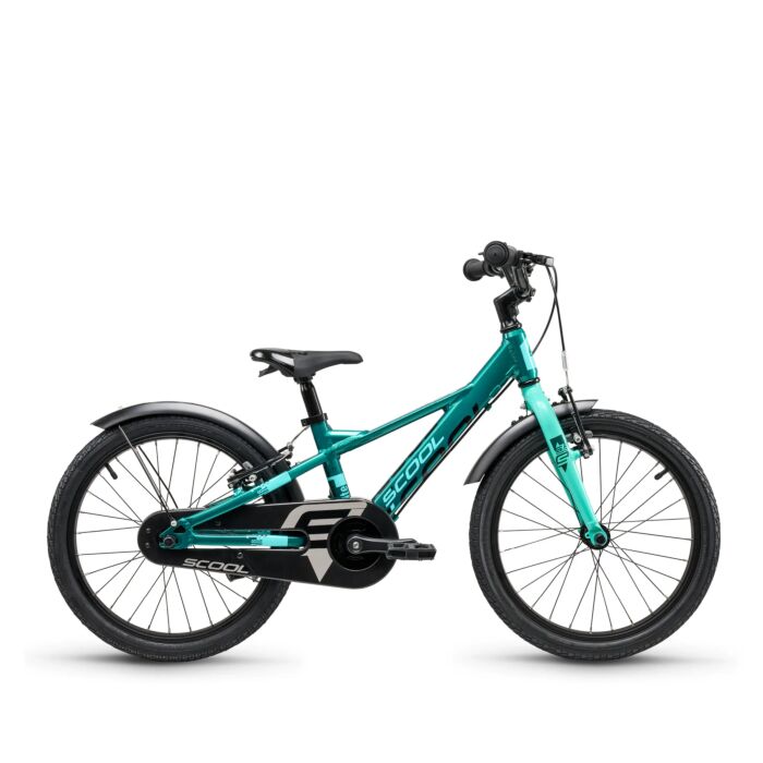 De Scool XXlite EVO 18 inch 1-speed vrijloop naaf in de kleur cyan/blauw is een kinderfiets die zowel kinderen als ouders zal bekoren. Het lichte aluminium frame met kindvriendelijke geometrie en doordachte details zorgt voor een glimlach op het gezicht van kinderen en maakt indruk op ouders. De fiets is uitgerust met een vrijloop en biedt functionaliteit en veiligheid in elk detail.