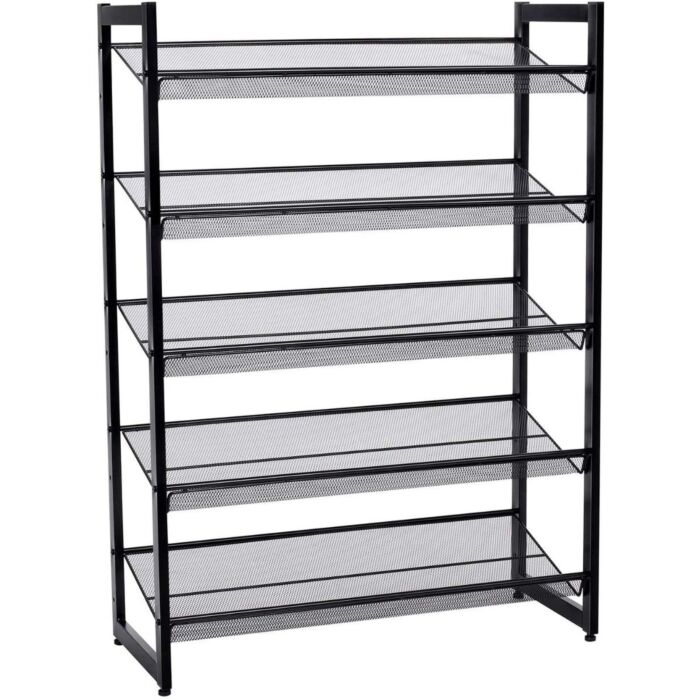 - Verstelbaar schoenenrek – de planken van metaalweefsel bieden een goede grip voor alle soorten schoenen.