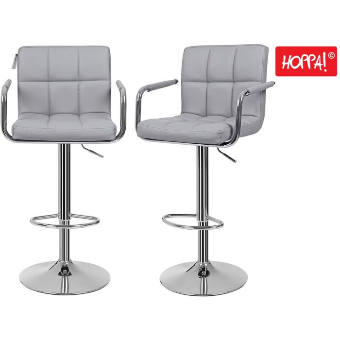 Hoppa! Songmics Barkruk Set van 2 - Grijs - Metaal/Imitatieleer - 38,5 x 44,5 x 115 cm