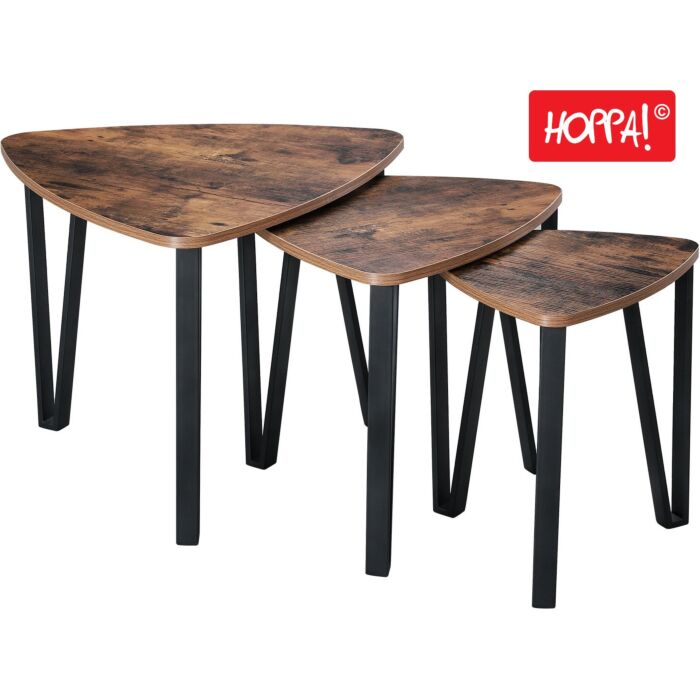 Hoppa! Songmics Bijzettafels - Set van 3 - Vintage - Zwart - Ijzer - 59 x 59 x 45 cm