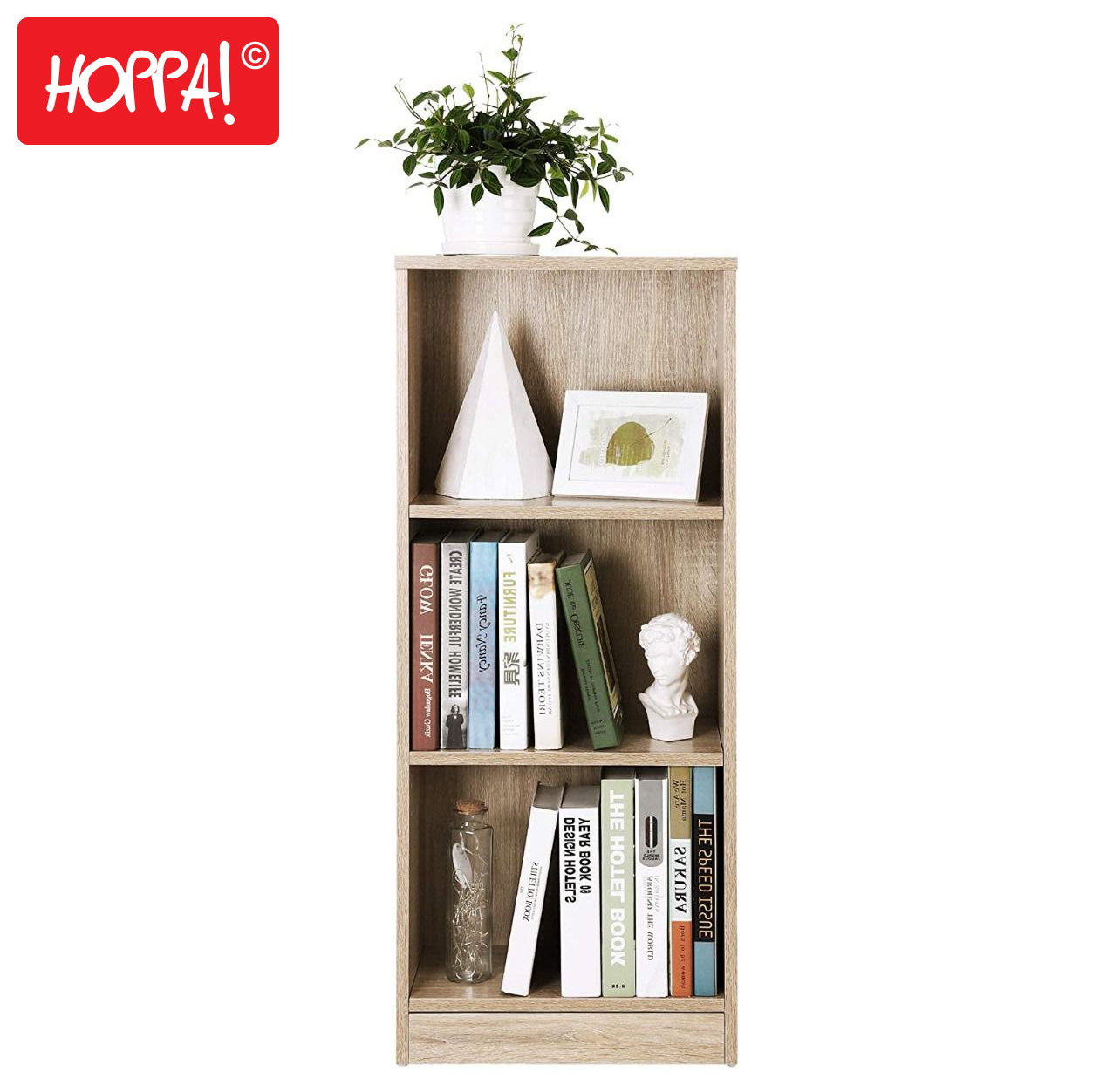Hoppa! Songmics Boekenplank met 3 vakken, verstelbare planken - Eiken - Hout