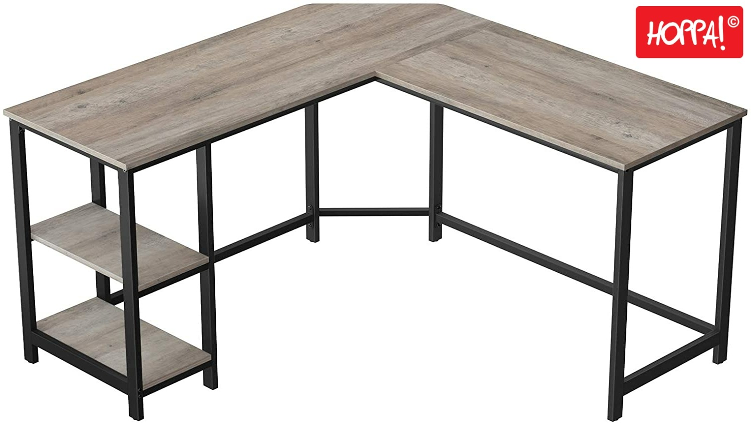 Hoppa! Songmics L-Vormig Bureau Met Planken - 138x138x75cm (BxDxH) - Zwart/Greige - Metaal