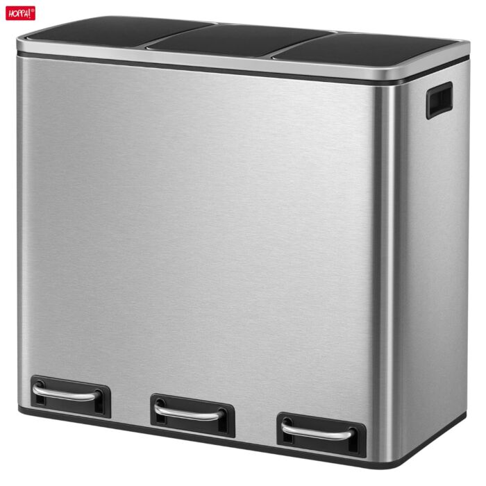Hoppa! Songmics Driedubbele Afvalbak - 3x 18 Liter - Zilver - RVS