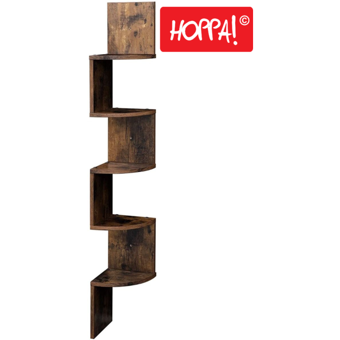 Hoppa! Songmics Zigzag Hoekkast - Wandplank - Wandkast - Bruin - Kunststof - 20x20x127,5 cm (BxDxH)