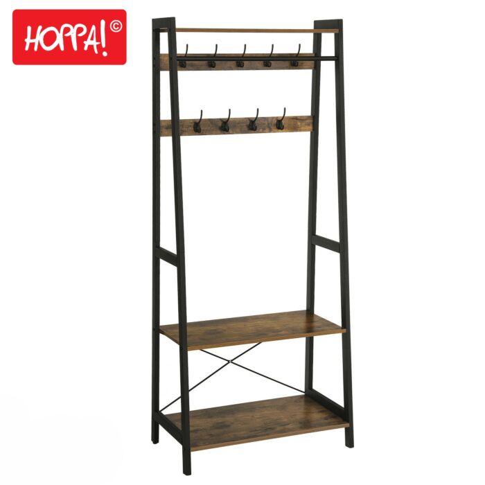 Hoppa! > Hoppa! Kapstok met ruime legplanken - Zwart metaal - Bruin 76 x 42.8 x 180 cm