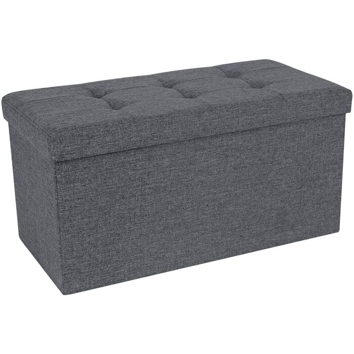 Hoppa! Songmics Linnen Zitbank Met Opbergruimte - Grijs - Linnen/Hout - 76 x 38 x 38 cm