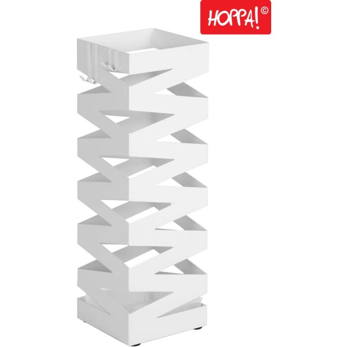 Hoppa! Songmics Metalen Paraplubak - Met Lekbak en Haken 49CM Hoog – Wit - Metaal