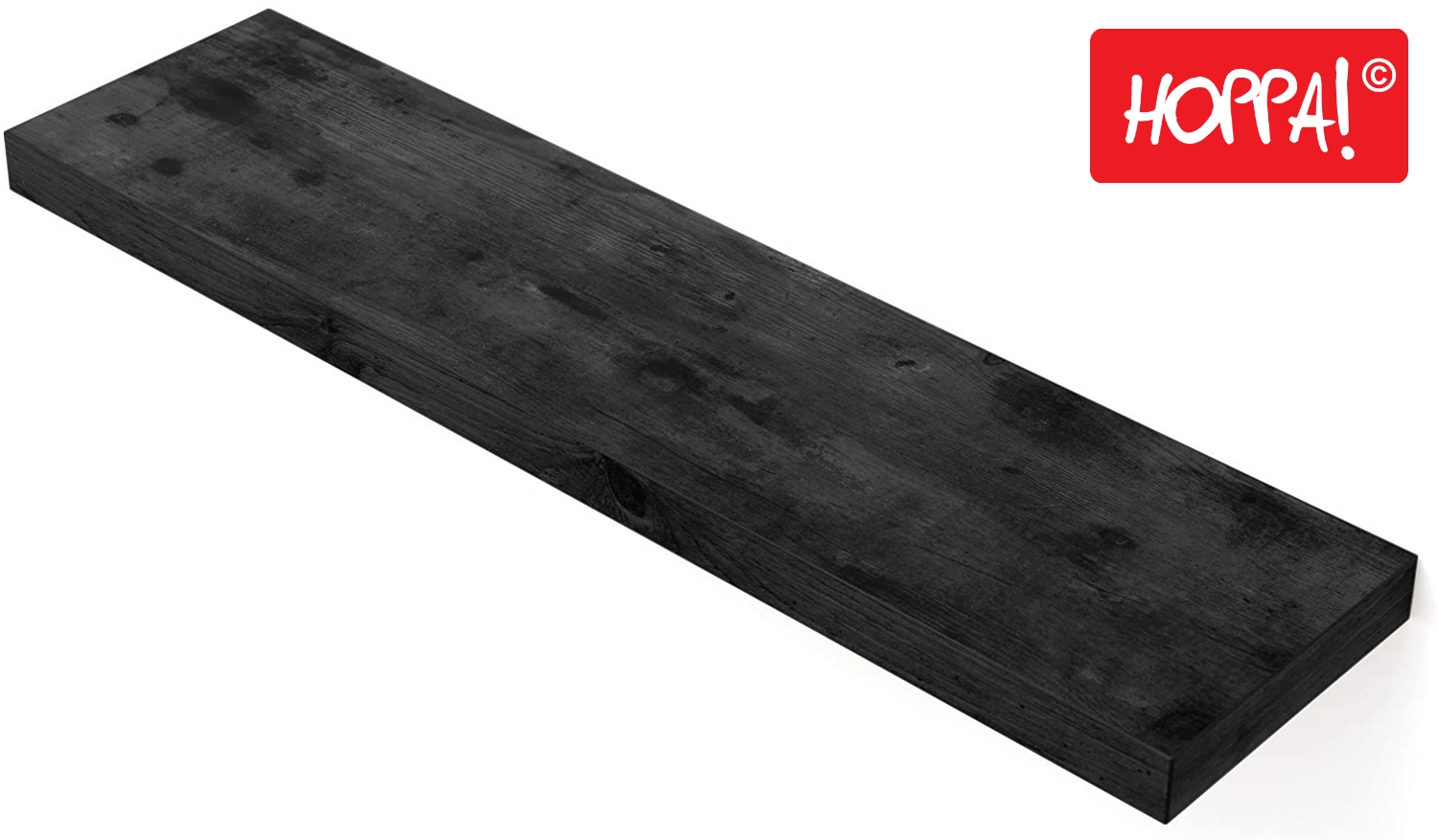 Hoppa! Songmics Rustieke Zwevende Wandplank 80x20 cm met Bevestigingsmateriaal - Zwart - MDF