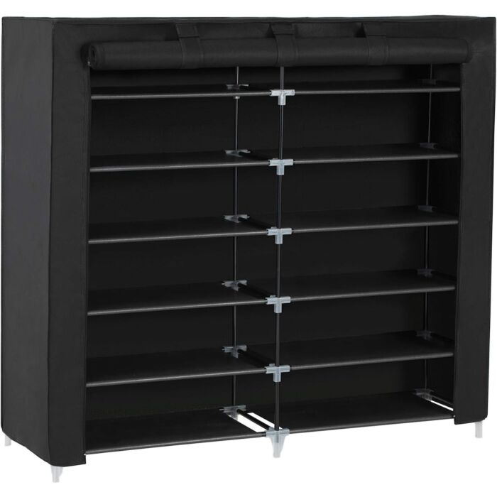 Hoppa! Songmics Schoenenrek met 7 planken met stofkap - Zwart - Fleece