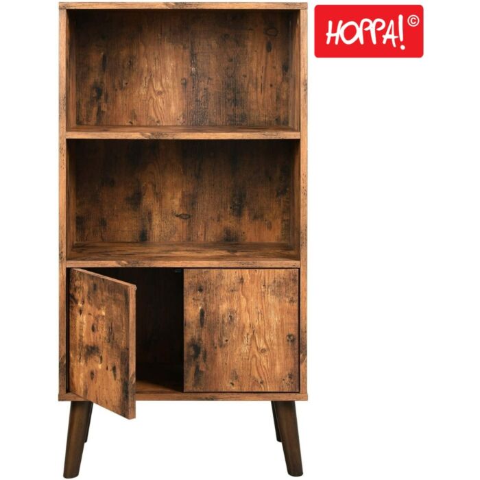 KWALITEIT, STABILITEIT, UTILITEIT: De schuine poten van deze retro boekenkast zijn gemaakt van massief rubberhout en worden ondersteund door schroeven en houten deuvels; daarnaast wordt de stevige spaanplaat gebruikt. Dit betekent dat de plank kan worden geladen met maximaal 50 kg.