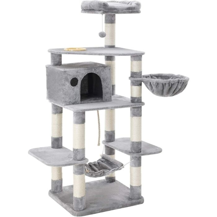 Hoppa! Songmics Stevige Kattenboom met Kattenbak, Krabpaal, in sisal Gewikkelde Krabpunten - Krabpaal - Grijs