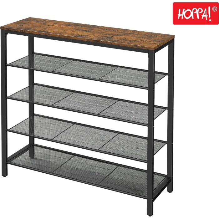 STRONG DESIGN: 4 open rekken met dichtgemaasd stalen gaas bieden veel ruimte voor uw schoenen. Het in het oog springende vintage oppervlak verwelkomt tassen, sleutels, fotolijstjes of een mooi boeket rozen (schapoppervlak tot 10 kg, schoenendragers kunnen tot 5 kg per stuk dragen).