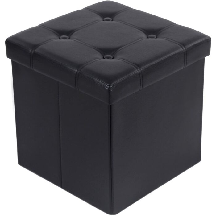 Hoppa! Songmics Zitbank met Opbergruimte - Zwart - Kunstleer/MDF - 38 x 38 x 38 cm