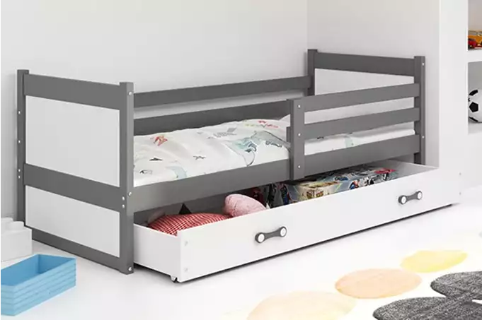 RICO Single Youth Bed 90X200 with Drawer, Graphite/White