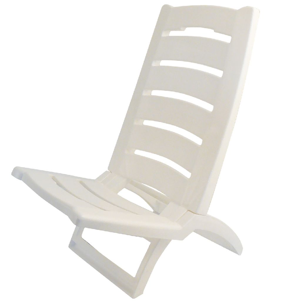 De Summertime strandstoel in wit heeft een afmeting van 37 x 79 cm en is vervaardigd van duurzaam kunststof.