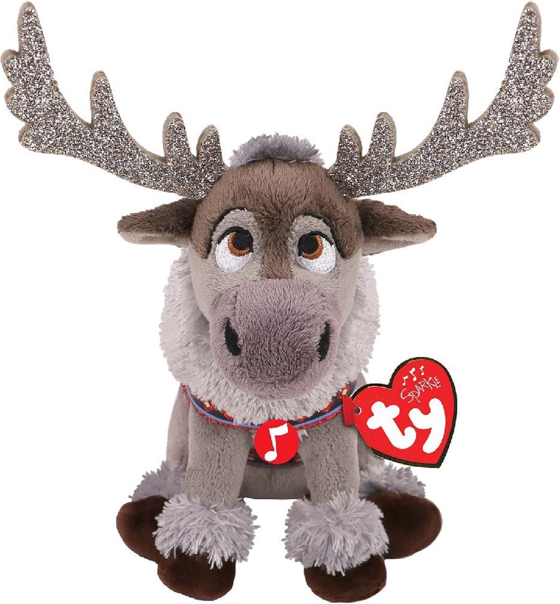 Ty Frozen Sven is een 15 cm grote zachte Sven pop uit de film Frozen 2. Als je op zijn buik drukt, gaat hij lachen!