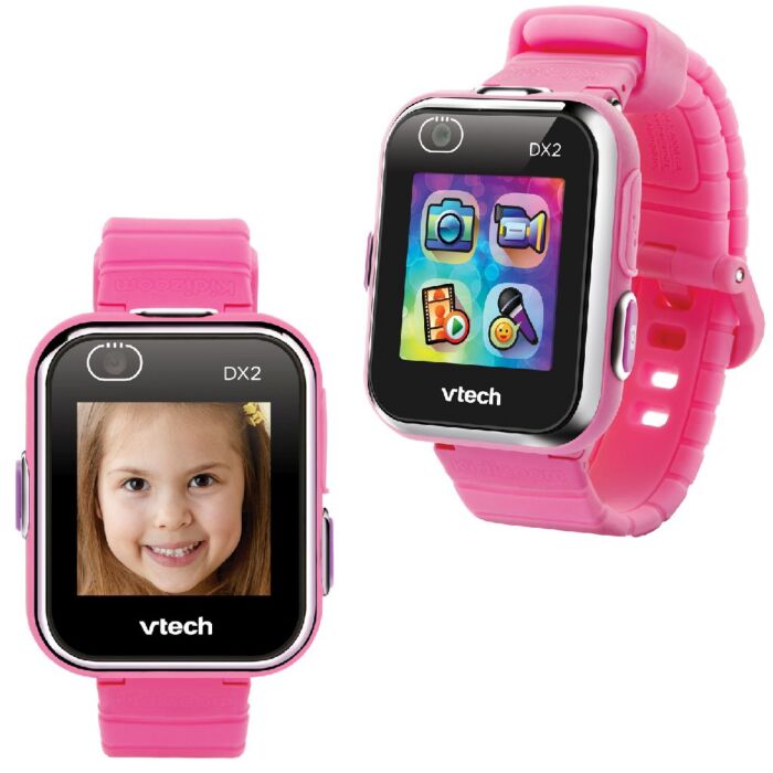 De VTech Kidizoom Smartwatch DX2 in roze is de nieuwe generatie selfie smartwatch voor kinderen! Dit horloge heeft een kleuren touchscreen met zowel analoge als digitale tijdweergave, plus een unieke 3D weergave. Met 2 ingebouwde camera's kunnen kinderen selfies maken, leuke momenten vastleggen op foto en video, en deze bewerken met coole effecten, kaders en filters. Het horloge biedt eindeloos speelplezier met diverse spellen en activiteiten, waaronder het vangen van monsters met behulp van augmented reality.